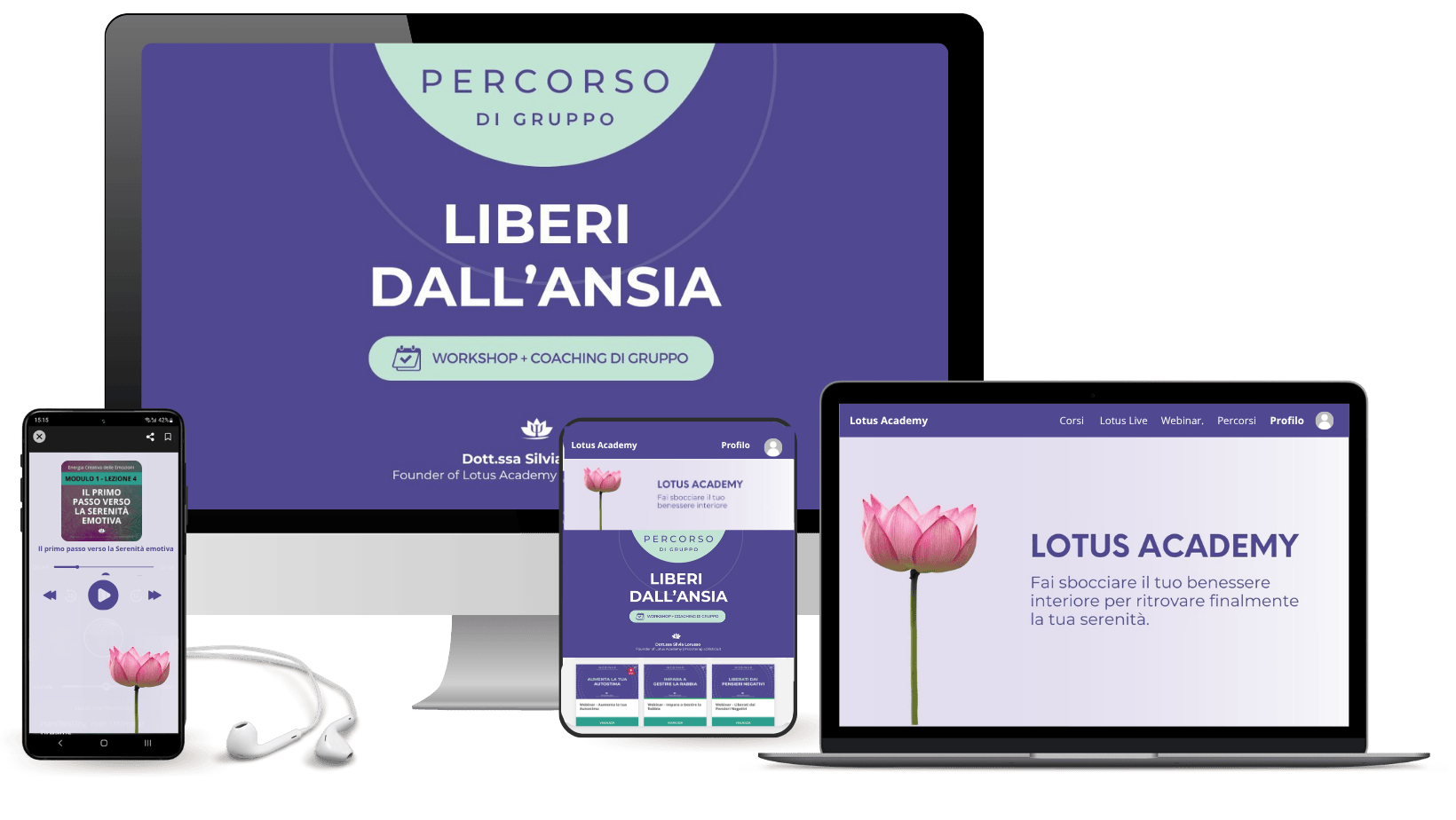 Entra nel Percorso di gruppo "Liberi dall'Ansia". Riservi il tuo posto e accedi subito ai 3 Bonus per iniziare subito + Accesso completo alla Lotus Academy per 12 mesi!